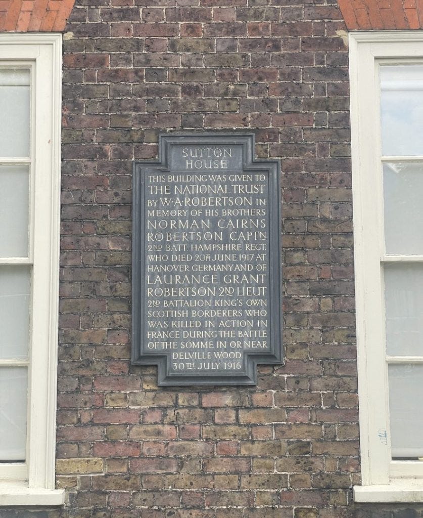 In 1938 Sutton House was acquired by the National Trust thanks to bequest from William Alexander Robertson (1871–1937) in memory of his two bothers that were killed during the First World War.