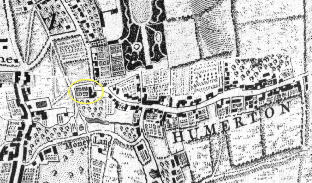 On the John Rocque map you can see one grand house which I’ve circled in yellow below but this has caused a bit of confusion.